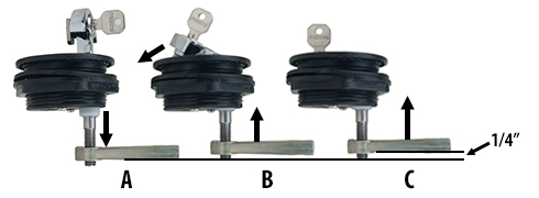 C When the "T" handle is fully closed, the cam bar pulls up on mounting surface creating a snug fit.